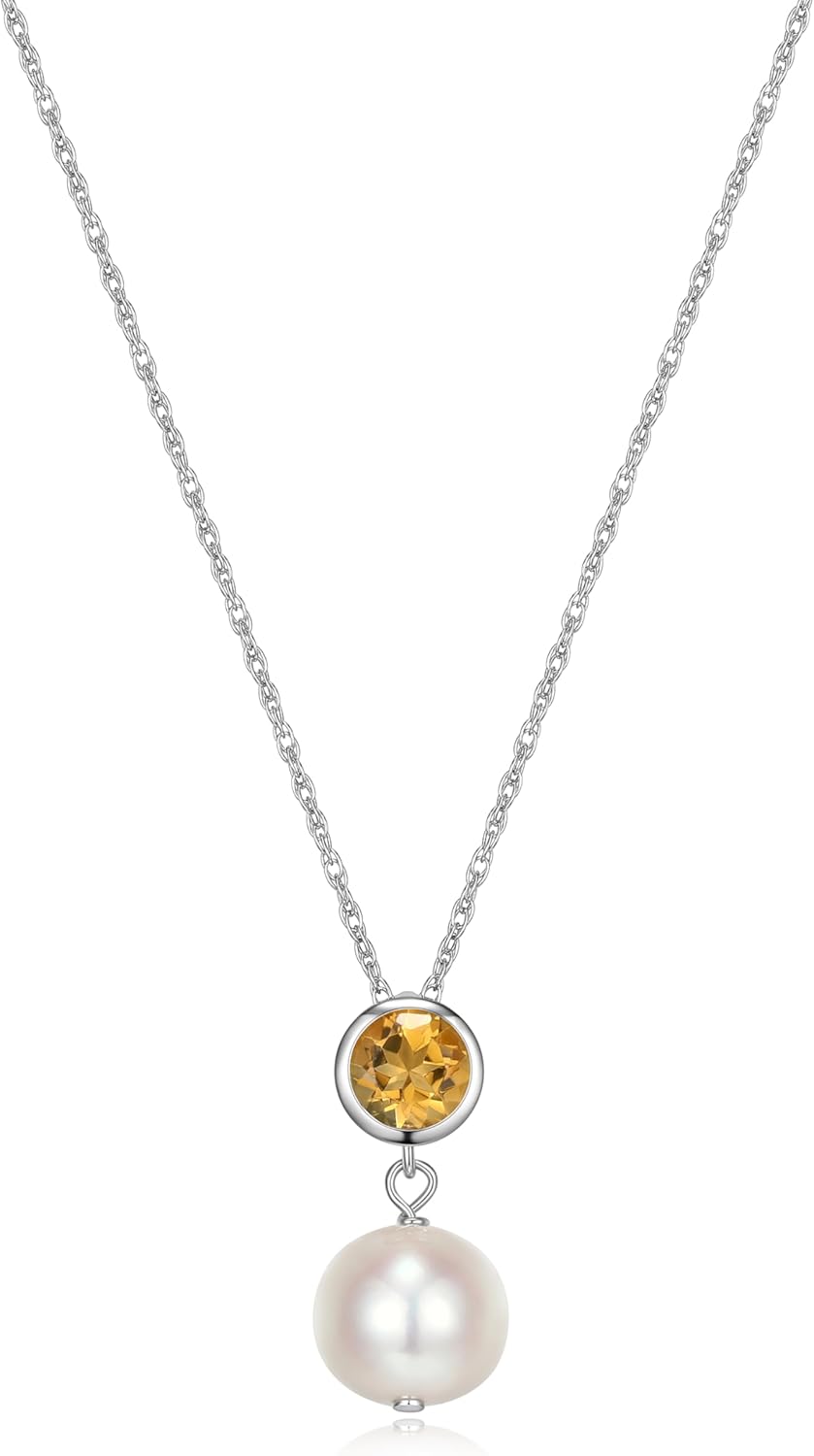 Our delicate pendant pairs a bezel-set genuine birthstone gem stone with a real white freshwater cultured pearl, to add a feminine touch to any outfit. The sweet drop styling sways with your every move. Coordinates with matching earrings, item B01L97F2MI.